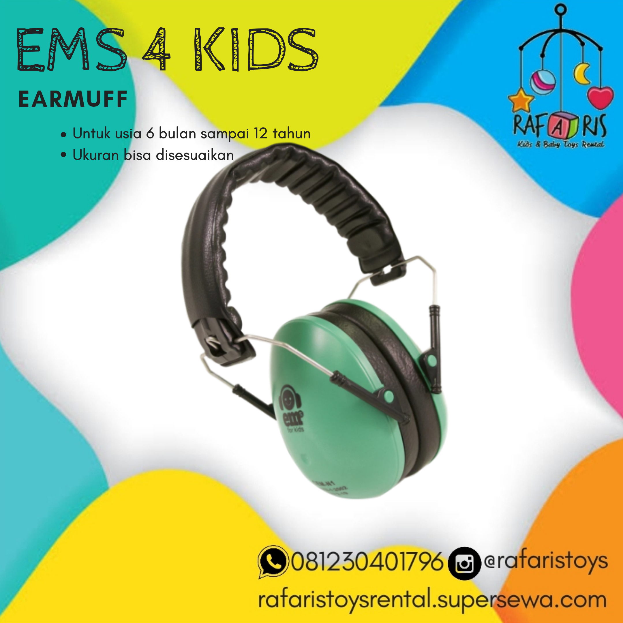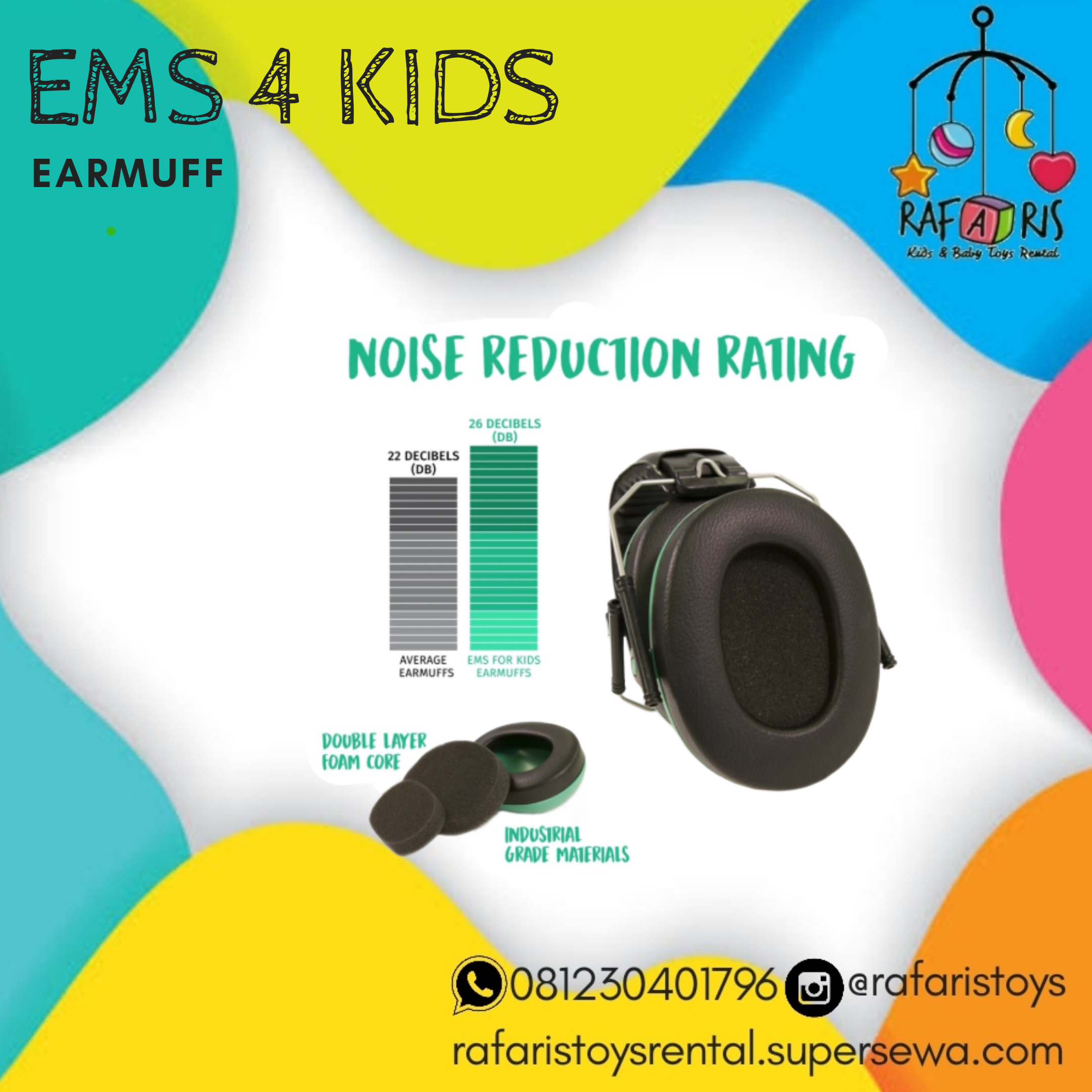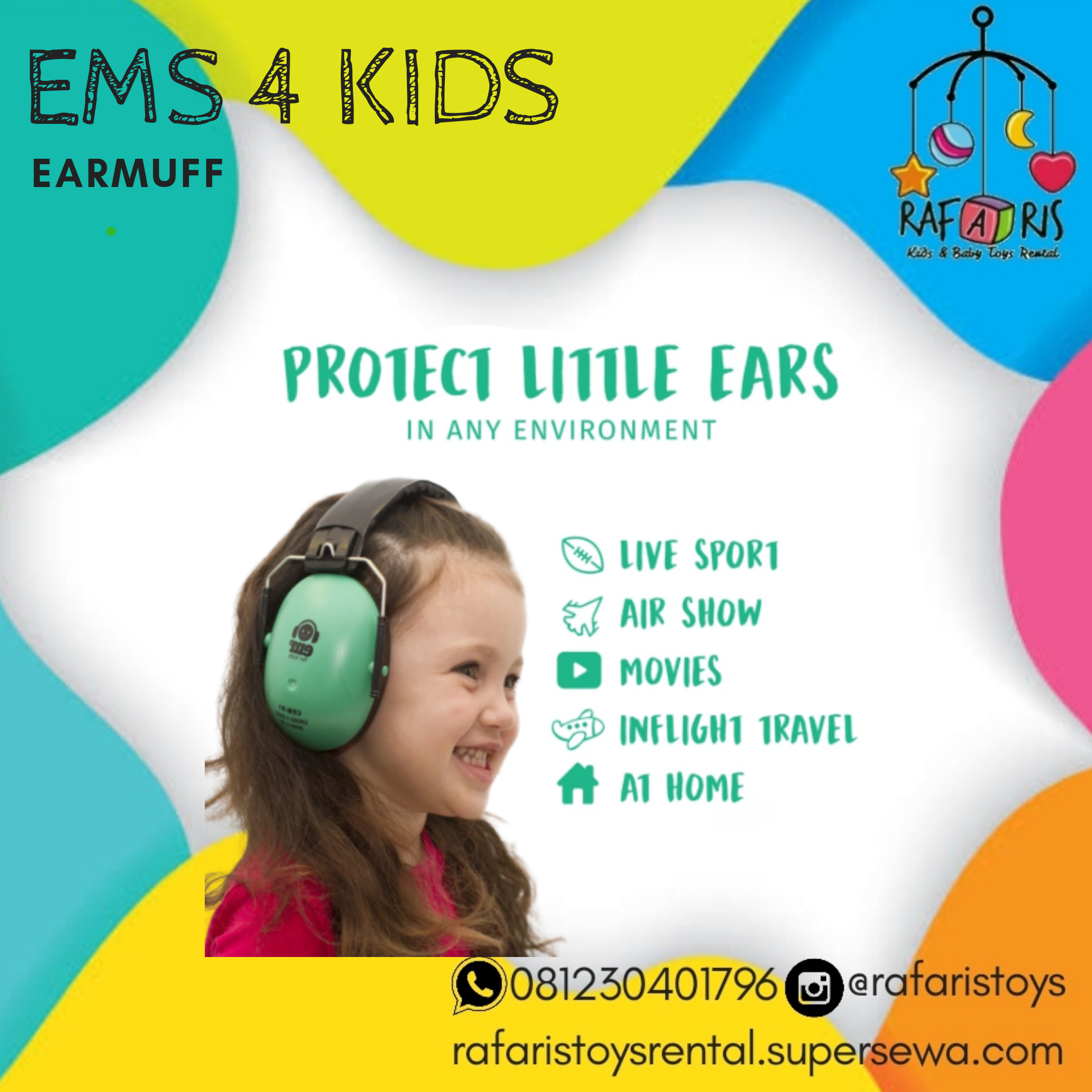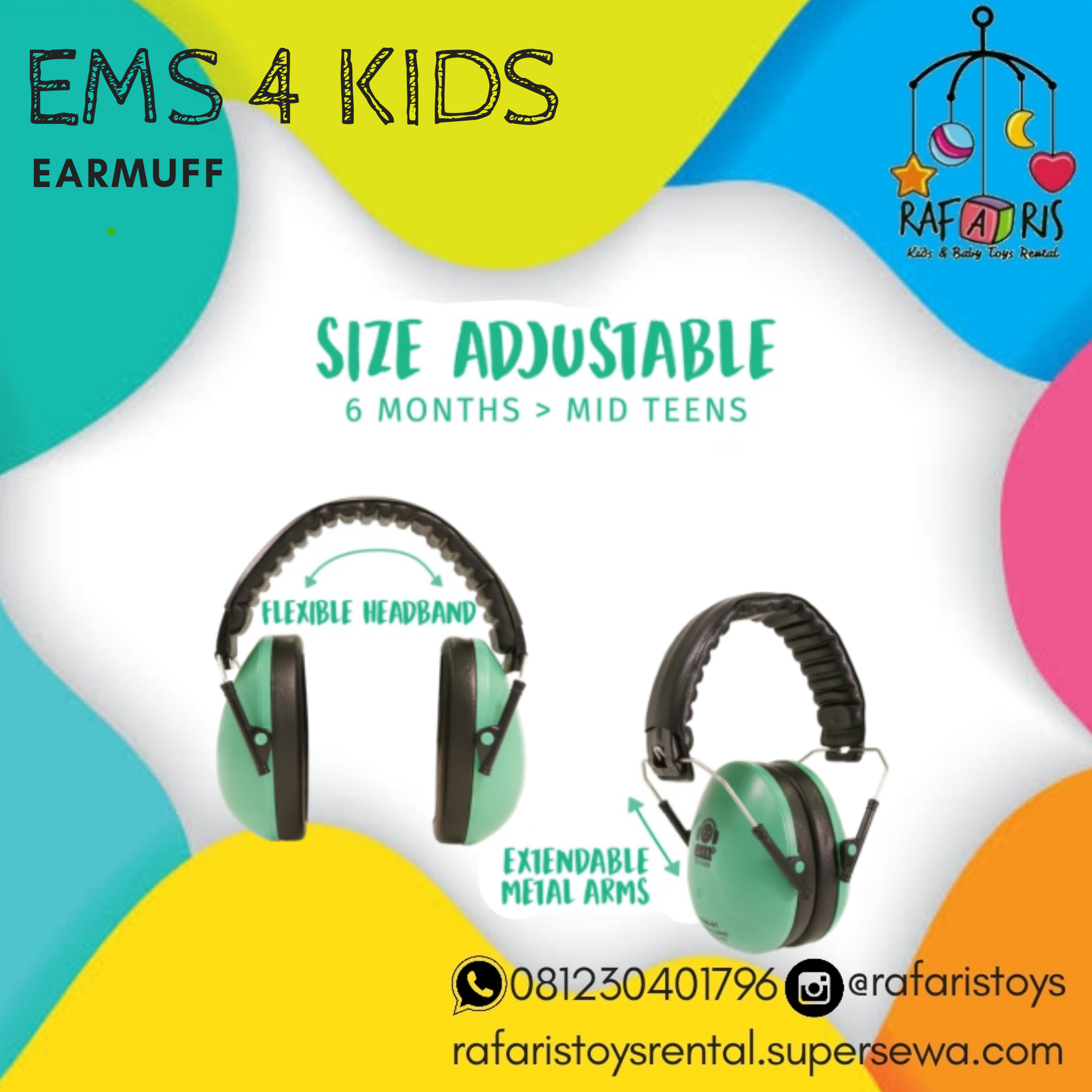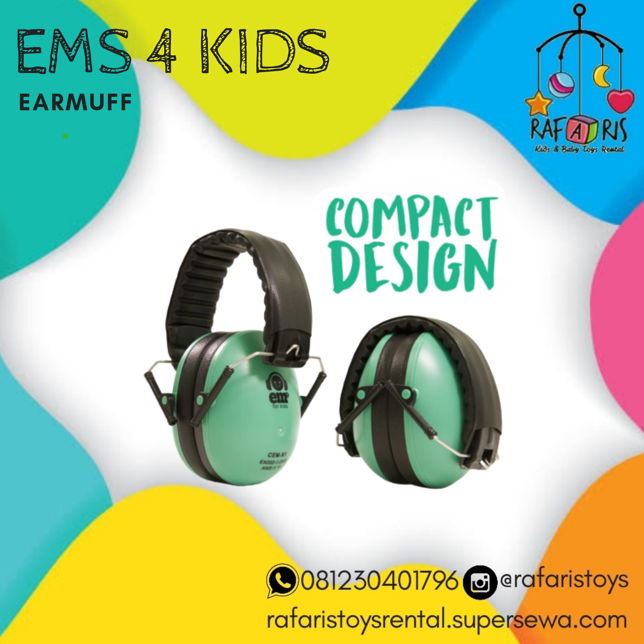 Earmuff EMS 4 kids adalah pelindung telinga anak untuk usia 6 bulan - 12 tahun. Didesain untuk mengurangi tekanan pada tulang tengkorak anak. Dapat dilipat sampai seukuran kepalan tangan orang dewasa, menjadikannya praktis untuk dibawa/disimpan.