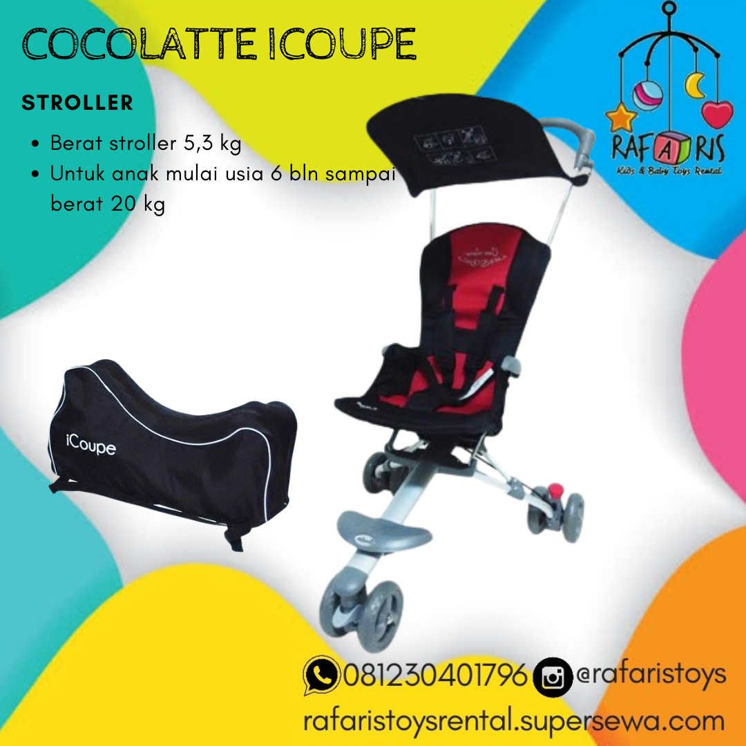 Cocolatte cl 887 Icoupe Baby Stroller merupakan merupakan kereta dorong bayi berbahan paduan alluminium dan polyester fabric yang kuat dan tahan lama. Baby stroller ini cocok digunakan untuk bayi usia bulan 6 sampai berat maksimal 25 kg.
