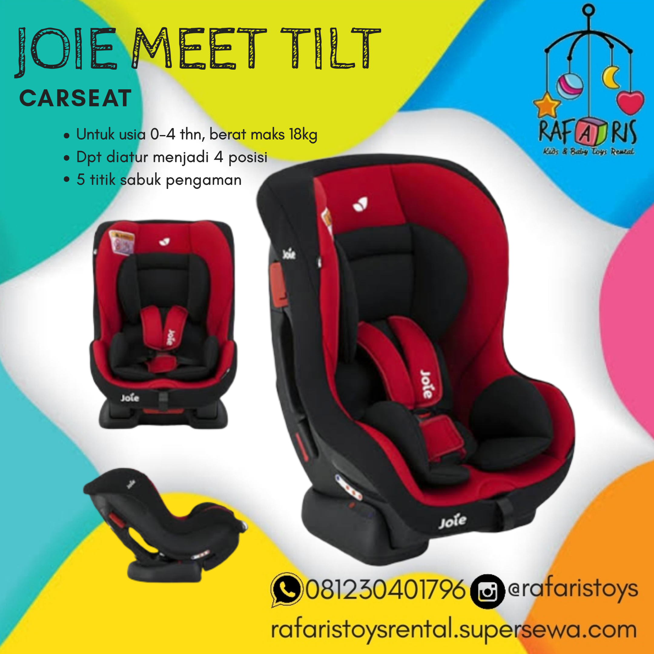 Car seat Joie Meet Tilt ini merupakan kursi mobil bayi yang empuk, nyaman menemani perjalanan anak anda dirancang untuk masa penggunaan yang lama dari usia 0 – 4 tahun! Joie Tilt dirancang untuk keamanan dan kenyaman perjalanan anak dengan desain yang menawan. Titik sabuk pengaman yang dapat disesuaikan, pemasangan yang mudah, aman dan stabil untuk perlindungan yang lebih baik memberi rasa tenang bagi orangtua. Bentuk kepompong, full body support dan recline maksimal ditambah dukungan ekstra yang nyaman, kain kursi bisa dicuci, dan dirancang untuk transisi yang mulus. Fitur: Cocok menghadap ke belakang dari lahir sampai 18kg Cocok menghadap ke depan dari 9kg sampai 18kg 4 Pengaturan posisi senderan: 1 menghadap belakang dan 3 menghadap ke depan Side Impact Security menawarkan perlindungan untuk kepala, tubuh dan pinggul Bantalan kepala bayi yang empuk dan mudah dilepas Bagian bawah tubuh, Sisipan penyangga yang dapat dilepas Basis profil rendah untuk pemasangan yang ketat dan pusat gravitasi rendah Jalur pemasangan dengan kode warna yang ditandai dengan baik Dual lock-off (penguncian ganda) untuk dipasang dengan sabuk pengaman kendaraan SoftTouch, 5 titik system pengaman dengan mudah disesuaikan, satu gerakan menarik sabuk dan penutup gesper bawah Sabuk pengaman tinggi bahu dapat disesuaikan Dimensi produk: P 49.2 x L 42 x T 61.6cm Product Usage: Group 0+/1, 0-18kg; approx. 0-4 years old