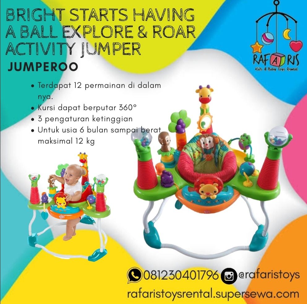 Latih kemampuan motorik dan sensorik anak anda dengan permainan Having a ball explore & roar activity jumper dari Bright Starts ini! Dilengkapi dengan suara musik yang ceria sehingga dapat melatih indra anak anda. Kami merekomendasikan anda menyewa permainan ini karena anak-anak mudah bosan dengan suatu permainan saja.