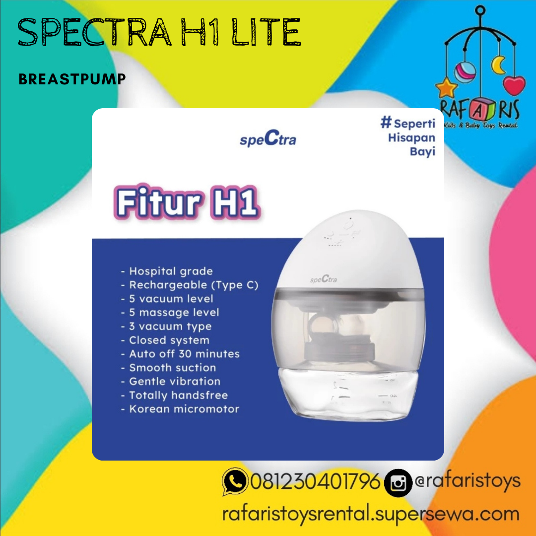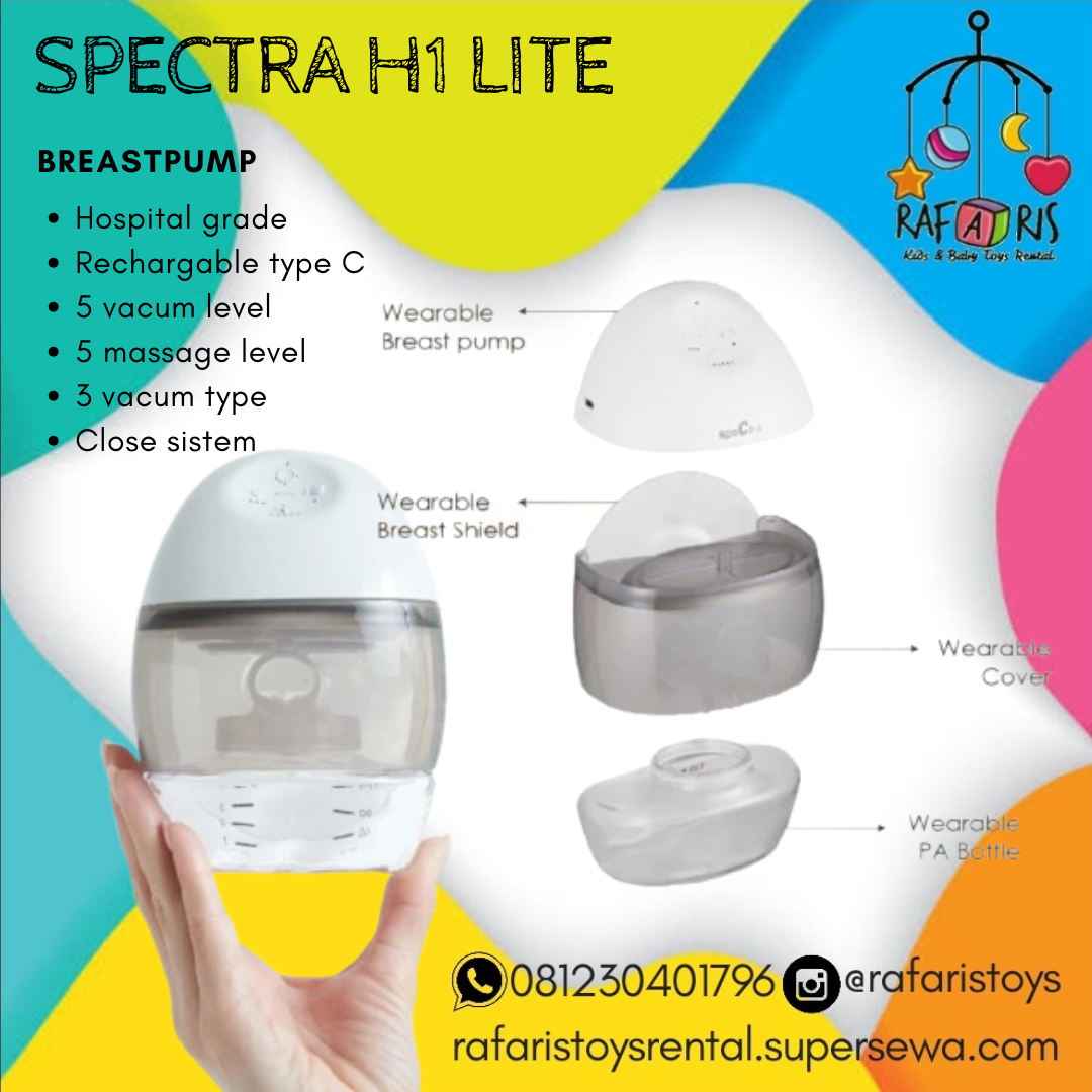 Memiliki 5 level mode pijat untuk menstimulasi LDR, memiliki 3 mode hisap dengan 5 level kekuatan hisap yang dapat disesuaikan dengan kenyamanan penggunanya. Semua bagian pada Spectra H1 Wearable Breastpump dapat dilepas sehingga mudah dibersihkan dan disterilisasi, terbuat dari plastik BPA Free dan memiliki sertifikasi KEMENKES RI.